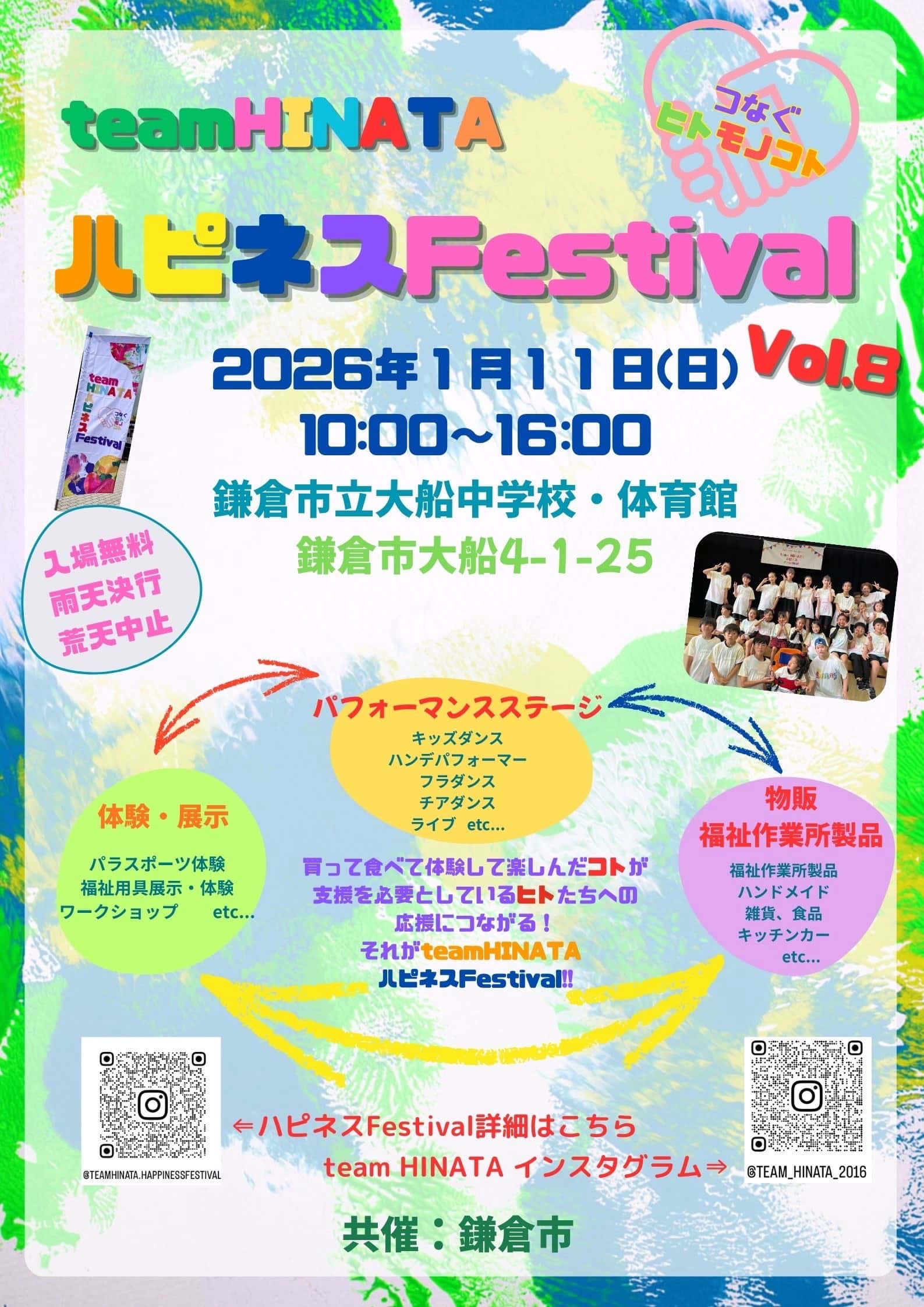 1/11 ハピネスFestival Vol.8開催のお知らせ 外部からのお知らせ teamHINATA様より キッズダンスチームteamHINATAが主催するチャリティーイベント『ハピネスFestival』です!! teamHINATA HPはこちら→https://teamhinata.wixsite.com/website