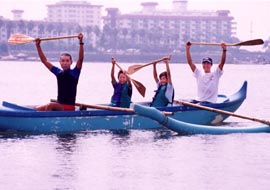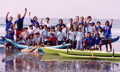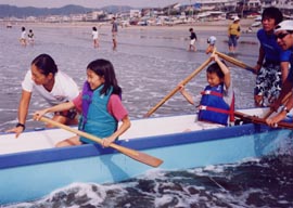 ■「2回目のカヌーは盛り上がったね、数名病欠の子もいたけど」「最後は、海はおいしいで盛り上がりたいね」…キッズプログラム最終回は、KOCスタッフの子どもたちに対する気持ちからカヌー&シーフードバーベキューをすることになりました。今回は病気になりませんように、晴れて風もありませんように。子どもたちの願いが通じて、最終回も風のないすばらしい晴天! カヌー日和に、材木座海岸には、2艇の4人乗りアウトリガーカヌーと、20名を超える日焼けしたKOCメンバーの笑顔がありました。 ■今回もカヌー体験に加えて、ビーチクリーンプログラムを実施。2班に分かれると袋を渡されたチームは、もう指示を待つこともなく自分たちでゴミを拾い出します。拾わなくちゃいけないゴミを見つけ出し、協力しながら袋へ。ビーチがきれいになっていきます。 ■カヌー体験班は、体操のあと、パドルの使い方をKOCのお兄さんたちにもう一度教えてもらいました。5月の第1回目のカヌー体験を思い出しながら波打ち際で練習します。さあ、いよいよカヌーに乗り込みます。第2回目なので余裕で乗り込み、漕ぎ出します。前後に乗り込むKOCのメンバーとも息ぴったり。スムースに沖の方まで進み、子どもたちの笑顔を乗せて戻ってきます。背のたつところまで来ると、海にジャブンと入る子どもたちも。 ■子どもたちがカヌー体験、ビーチクリーンを進める中、大人たちはバーベキューの準備です。コンロを組み立て、炭を出し、食材を準備したところで子どもたちが合流。「このイカ、かます、サザエ、アサリはこの湘南の海で捕れたものなんだよ」「うわ〜、まだいきてる?」調理される前の生の食材は、子どもたちの興味の的。 ■お兄さん、お姉さんにシラスご飯と鎌倉わかめのお味噌汁を作ってもらい、自分たちが手伝ったバーベキューで焼いて食べる海産物は最高! 当初心配しましたが用意した食材で子どもも大人も満腹になりました。食事の後には年長の子が小さな子をリードして、みんなで仲良く遊びました。片付けも楽しそうにみんなで手伝い、打ち解けた姿も見せてくれました。 海に入れなかった子どもが、自然に海で遊んだり、集団行動が苦手な子が、違和感なく他の学年の子と一緒になったりと、一人一人が抱えていた課題をみんないつの間にか楽しそうに乗り越えていきました。鎌倉の海と、頼もしいKOCの皆さんに囲まれて、子どもたちと大人の笑顔がいっそう輝いたプログラムでした。皆様、ご協力ありがとうございました。 |