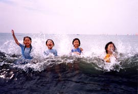 ↑ ああ、たのしかった! | ↑ 海に飛び込んじゃいました! |