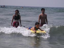 ↑ 2回目の余裕で笑顔も出たよ! | ↑ にわかボディボーダーだ! |